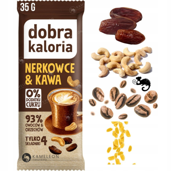 Daktyle suszone (81 %), orzechy nerkowca (12 %), kawa mielona (4 %), chrupki zbożowe (mąka kukurydziana, mąka ryżowa).