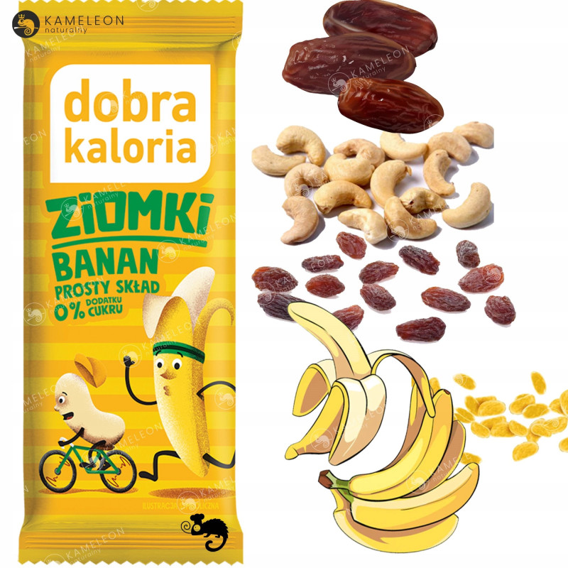Orzechy nerkowca (33 %), pasta daktylowa, rodzynki, banany suszone (10 %), orzechy nerkowca prażone (5 %), chrupki komosowe (komosa ryżowa, błonnik z cykorii), naturalny aromat.