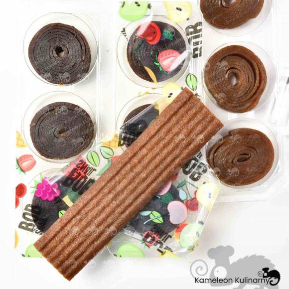 Odcień poszczególnych przekąsek różni się zależnie od składu (owoców, z których został wykonany).