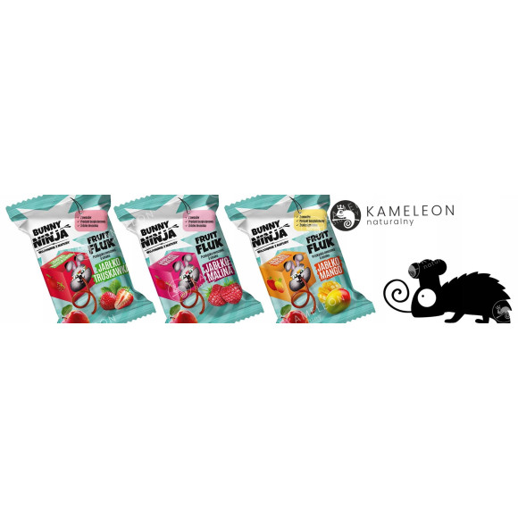 Taka forma przekąski Bunny Ninja z pewnością zawróci w głowie każdemu małemu poszukiwaczowi owocowych przygód. Fruit Fluk to prawdziwa eksplozja smaków i moc kreatywnej zabawy. Cienki i długi sznureczek można wyciągać, przeciągać, urywać gwarantując sobie mnóstwo zabawy!