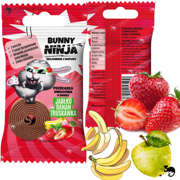 PRZEKĄSKI BUNNY NINJA to pozytywne emocje, coś pożytecznego dla zdrowia, a jednocześnie pysznego - "cukierki owocowe". Można śmiało powiedzieć, że przekąski są wytworem samej natury, ponieważ do ich przygotowania użyte są tylko owoce i nic więcej!