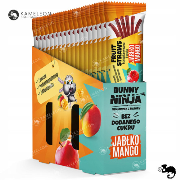 Bunny Ninja Fruit Straws o smaku jabłka i mango to długie, cienkie sznureczki nasycone owocowym smakiem.