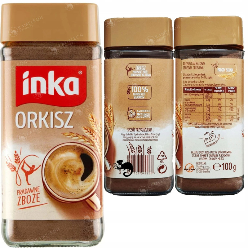 Aromatyczna Inka i moc pradawnego zboża o wysokiej wartości odżywczej - taka właśnie jest Inka Orkisz. To rozpuszczalna kawa zbożowa o prostym składzie, którą warto pić każdego dnia!
