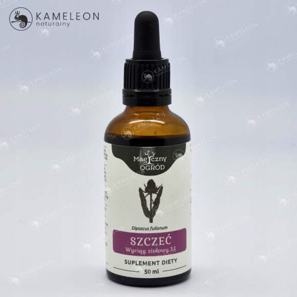 SZCZEĆ POSPOLITA (Dipsacus sylvestris, D. fullonum) dwuletnia roślina z rodziny szczeciowatych z charakterystycznymi kwiatami i łodygą pokrytą kolcami. Występuje naturalnie w Europie, w Afryce Północnej i w zachodniej części Azji. Surowcem zielarskim jest jej korzeń, który obfituje w kwas chlorogenowy, chinowy i kawowy, a także w irydoidy. W medycynie ludowej szczeć stosowana była przy problemach ze stawami. Wspiera prawidłową odporność organizmu i prawidłowe funkcje stawów przy boreliozie. W wygodnej i bardzo dobrze przyswajalnej formie płynu.