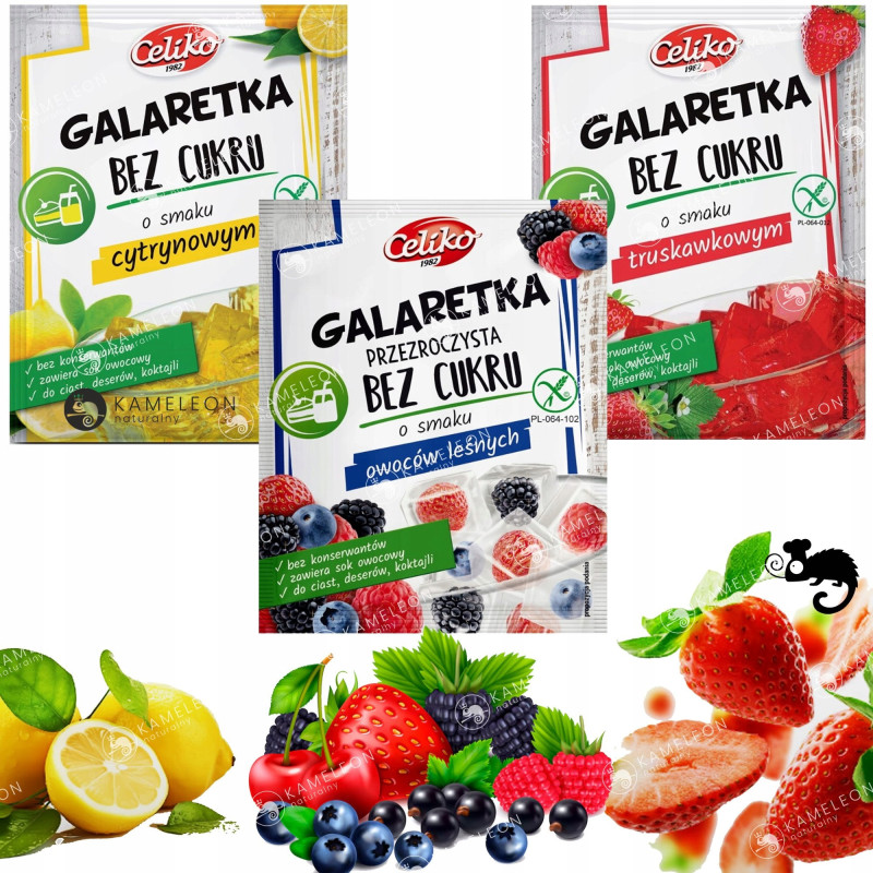 Galaretka BEZ CUKRU, przeznaczona dla osób stosujących dietę niskocukrową oraz dbających o linię.