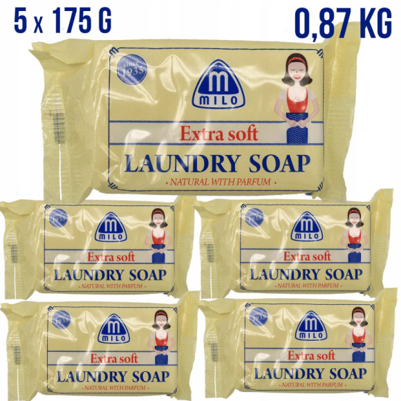 Mydło szare Milo do prania 175 g zapachowe. Chroni włókna i kolory, nie drażni skóry, skutecznie usuwa plamy i brud, ulega biodegradacji. To mieszanka soli potasowych, wyższych kwasów karboksylowych, gliceryny, kwasu cytrynowego, chlorku sodu i innych.