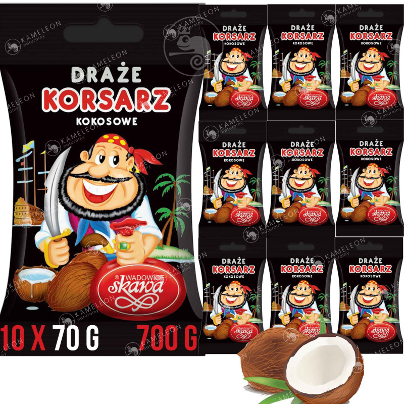 Cukier, polewa kakaowa 17,9% [cukier, tłuszcze roślinne (palmowe, shea), kakao o obniżonej zawartości tłuszczu, emulgatory: lecytyny (z soi), aromat], wiórki kokosowe 10% (zawierają dwutlenek siarki), serwatka w proszku, tłuszcz palmowy, mleko w proszku odtłuszczone, wafle (mąka pszenna, skrobia, olej rzepakowy, emulgator: lecytyny (z soi), sól), syrop glukozowy, barwnik: karmel amoniakalny, substancja glazurująca: guma arabska.