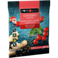 Cukierki dzika róża / imbir / propolis bez dodatku cukru z glikozydami stewiolowymi i izomaltem. Landrynki ziołowo-owocowe słodzone stewią odpowiednie dla diabetyków.