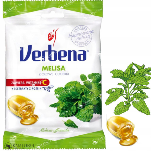 Syrop glukozowy, cukier, syrop glukozowo-fruktozowy, kwasy (kwas cytrynowy, kwas jabłkowy), naturalny aromat melisy, ekstrakty roślinne (werbena 0,2%; melisa 0,1%; pokrzywa 0,06%; mięta pieprzowa 0,02%), witamina C, sól, maltodekstryna.