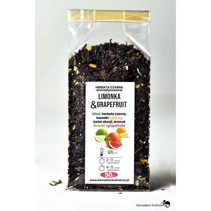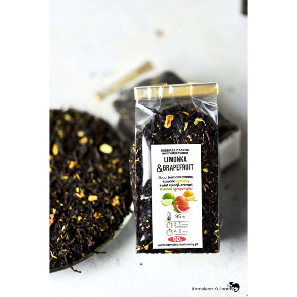 Skład: herbata czarna, kawałki cytryny, kwiat akacji, aromat limonki i grapefruita