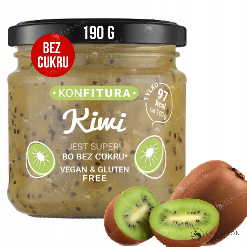 Składniki: kiwi 55%, woda, koncentrat soku jabłkowego, skrobia ryżowa, substancja żelująca: pektyny, regulator kwasowości: kwas cytrynowy.