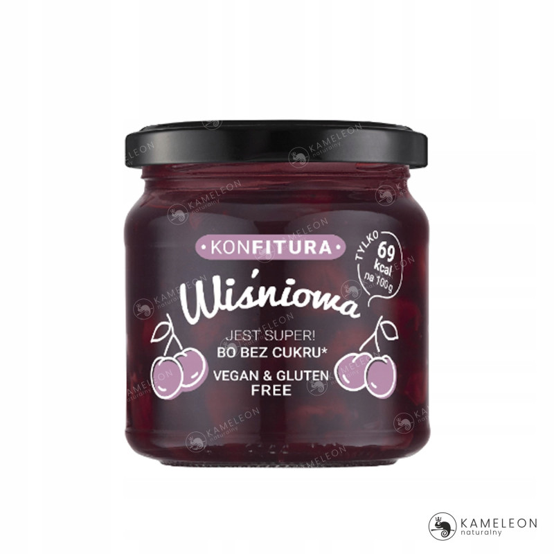 Składniki: wiśnia 55%, woda, koncentrat soku jabłkowego, skrobia, substancja żelująca: pektyny, sól, regulator kwasowości: kwas cytrynowy.