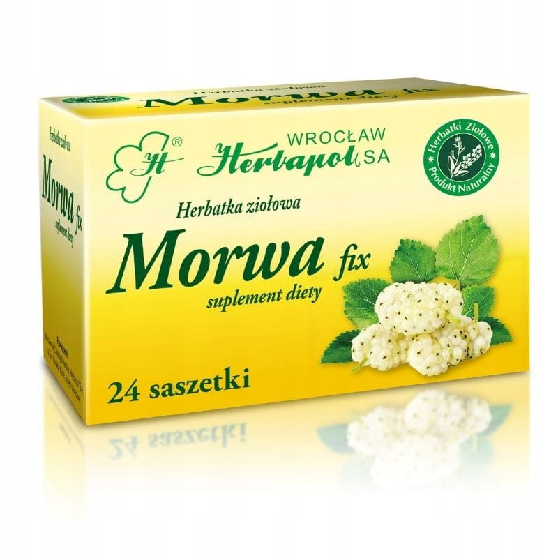 Herbatka przygotowana w 100 procentach z liścia morwy białej, który korzystnie wpływa na przemiany węglowodanów.