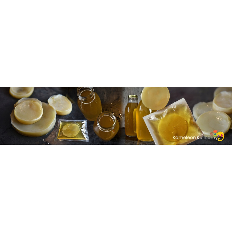 Jest to galaretowany krążek (jeśli produkcja odbywa się w okrągłym naczyniu), o kolorze od biało-pomarańczowego do brązowego, o średnicy zależnej od naczynia, w którym powstaje.
