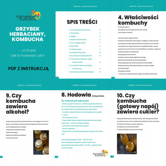 ✔ GOTOWY NAPÓJ (KOMBUCHA), przygotowany z grzybka herbacianego może zawierać śladowe ilości alkoholu.