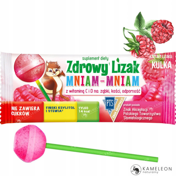 Zdrowy Lizak Mniam-Mniam z Witaminą C i D na Ząbki, Kości i Odporność posiada akceptację Polskiego Towarzystawa Stomatologicznego.