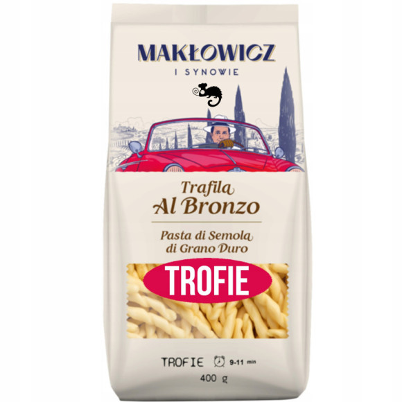 Metoda Trafila al bronzo, czyli procesowanie ciasta na makaron poprzez specjalne matryce wykonane z brązu, ma na celu nadanie makaronowi specjalnej porowatej struktury, dzięki której pasta świetnie wchłania sos. W połączeniu z najwyższej jakości pszenicą durum makaron “Makłowicz i Synowie” ugotowany al dente jest prawdziwie włoskim doświadczeniem.
