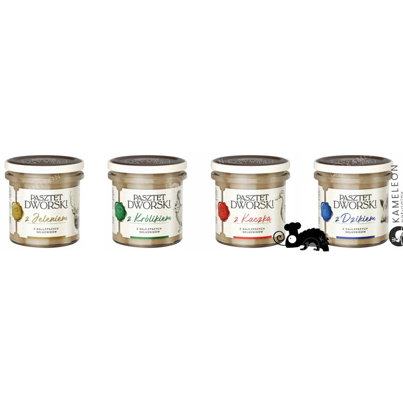 Pasztety Dworskie stworzone zostały jedynie z najlepszych gatunków mięsa, a ich skład wolny jest od konserwantów, barwników, wzmacniaczy smaku i sztucznych dodatków. Ponadto należą do produktów bezglutenowych, gwarantując pełnię smaku bez wyrzeczeń. Pasztety Dworskie zamknięto w poręcznych słoiczkach o pojemności 130 g, które zawierają idealną porcję specjału, dzięki któremu zwykły posiłek zmieni się w wystawną ucztę niczym ze szlacheckiego dworu.