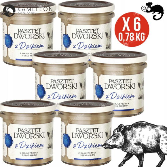 Wyśmienity, naturalny specjał o wyrazistym smaku osiągniętym dzięki połączeniu mięsa z dzika i najlepszej gatunkowo wieprzowiny. Doskonale doprawiony kompozycją przypraw i ziół typowych dla tradycyjnej kuchni polskiej, z dodatkiem czosnku i cebulki. Idealny wybór dla prawdziwych miłośników pasztetu z dzika!