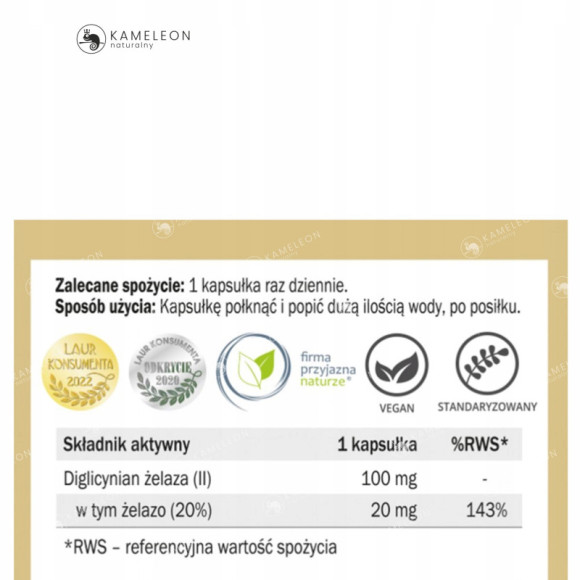 Źródło żelaza w formie diglicynianu żelaza (II)