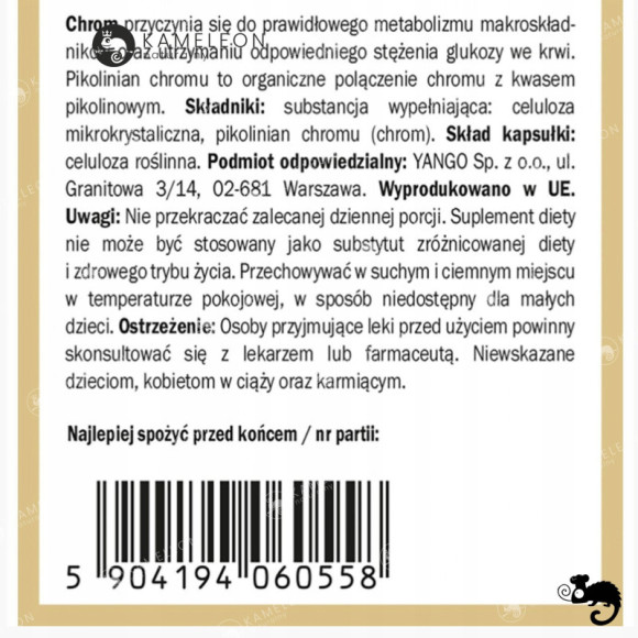 Substancja wypełniająca: celuloza mikrokrystaliczna, pikolinian chromu (chrom).