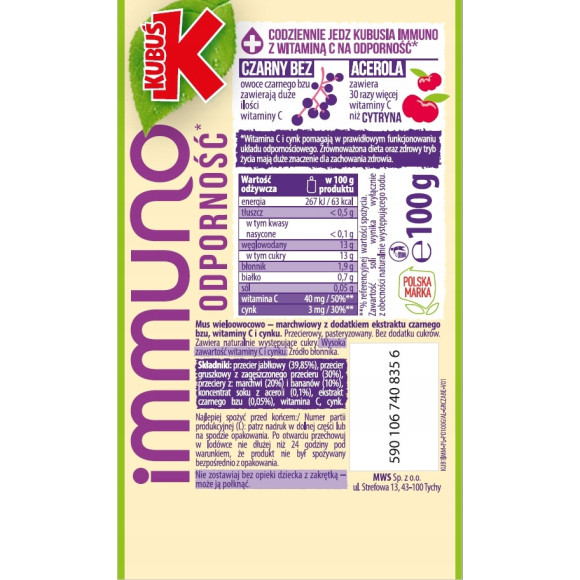 Codziennie jedz Kubusia Immuno z witaminą C na odporność*