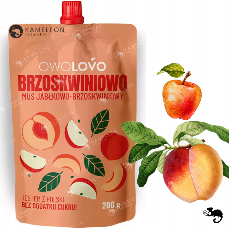 - zapakowany w wygodne opakowanie typu pouch, w którym znajduje się aż 200 g (ok. 1,5 jabłka) pysznego musu owocowego