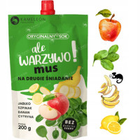 OryginalnySok MUS to zdrowy, płynny posiłek dla małego i dużego. Wykonany z przecierów ma gęstą konsystencję i bogaty aromat. 100% To naturalna i bezcukrowa alternatywa dla słodyczy. Wszystko zamknięte w zgrabnym opakowaniu można zabrać ze sobą do szkoły, na podwórko lub na spacer.