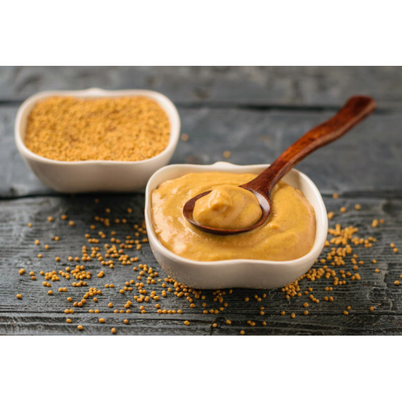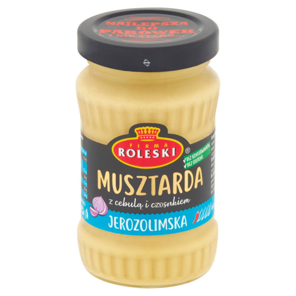 woda, gorczyca (15%), ocet spirytusowy, cukier, sól, suszony czosnek (0,5%), suszona cebula (0,4%), naturalny aromat.