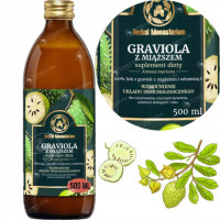 100% sok z owoców gravioli z miąższem (annona muricata), kwas L-askorbinowy (źródło witaminy C).