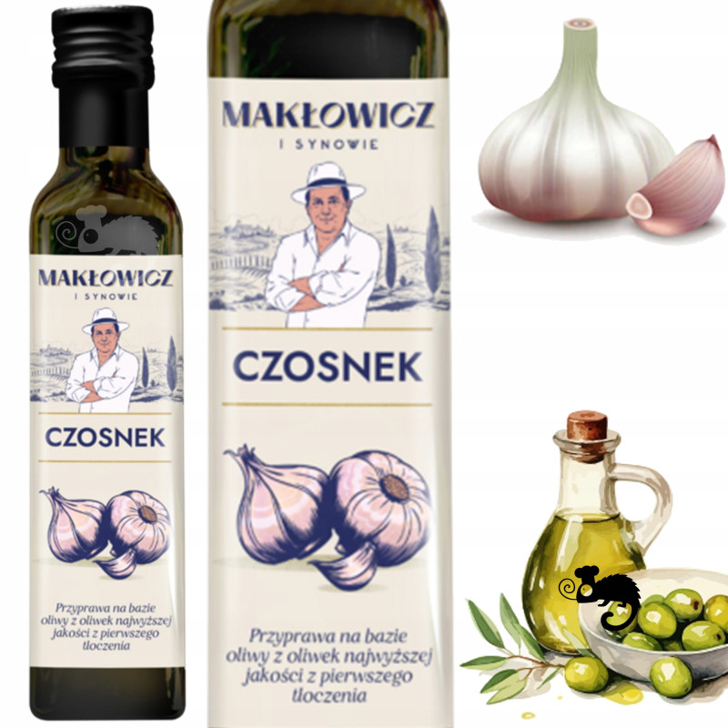 CZOSNEK. PRZYPRAWA NA BAZIE OLIWY Z OLIWEK NAJWYŻSZEJ JAKOŚCI Z PIERWSZEGO TŁOCZENIA.
