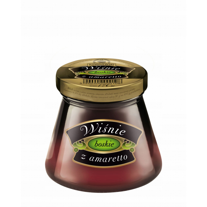 Dojrzałe polskie wiśnie umyto i delikatnie pozbawiono pestek. Potem dodano cukier i łagodnie prużono. Na koniec dolano oryginalnego włoskiego amaretto, które nadaje im niepowtarzalny wytrawny smak.