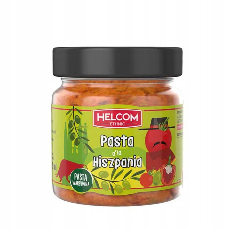 Skład: warzywa 81% (ciecierzyca gotowana, pomidory 19%, papryka czerwona 10%, oliwki zielone drylowane 10%, groszek zielony), koncentrat pomidorowy, miazga sezamowa tahini, olej rzepakowy, woda, przyprawy, sól, czosnek suszony, regulator kwasowości: kwas cytrynowy.