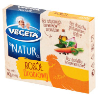 Chcesz przyrządzić sycący i smaczny rosół z kury? Sięgnij po kostkę rosołu Vegeta Natur. Nie zawiera ona glutaminianu sodu, a specjalna kompozycja warzyw, przypraw i ziół da Ci poczucie kulinarnej satysfakcji i talerz gorącej, dobrze doprawionej, pysznej zupy.