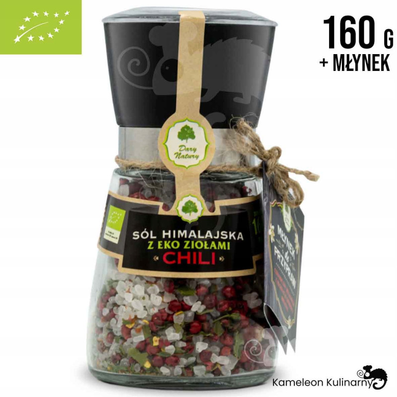 Doskonała kompozycja soli himalajskiej z dodatkiem chili oraz innych przypraw ekologicznych, która nadaje potrawom