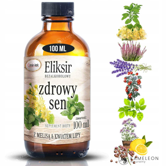 ELIKSIR dla zdrowego snu powstał z wyciągów z roślin takich jak: melisa, lipa, wrzos, lawenda, kozłek lekarski, głóg, szyszka chmielu, gryka.