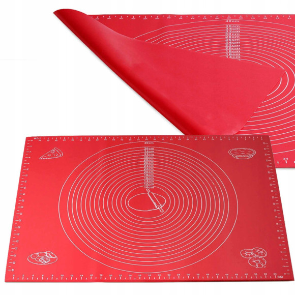 - z oznaczonymi skalami na środku (od 10 do 40cm co 2 cm) i centymetrami po bokach, dzięki czemu możemy łatwo dopasować np. rozwałkowane ciasto do foremki.