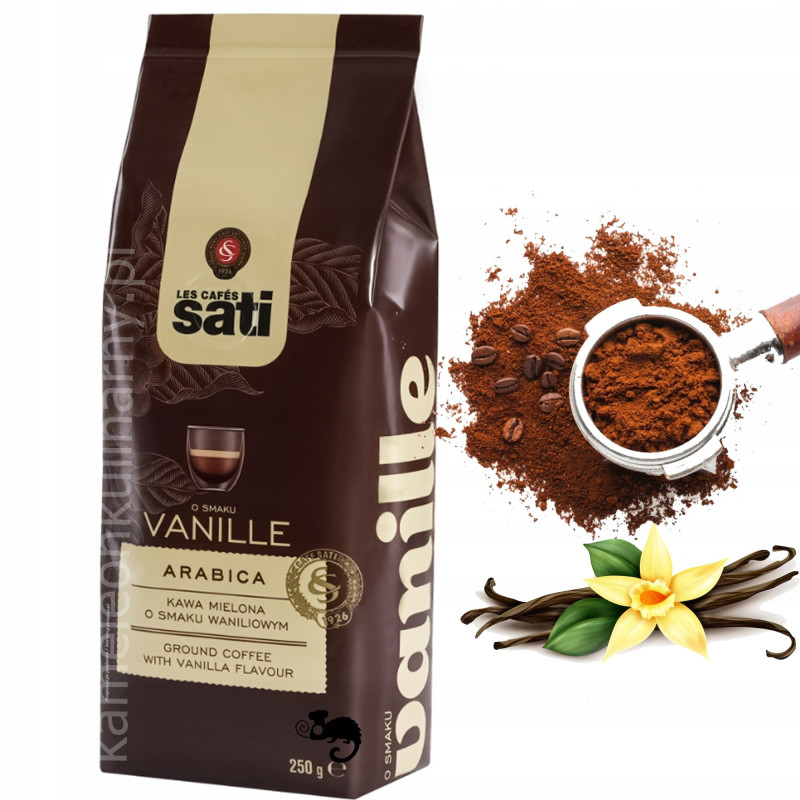 Kawa Sati Waniliowa to mieszanka wysokiej jakości arabik pochodzących z Ameryki Środkowej oraz Południowej. Jest to kawa aromatyzowana smakiem wanilli. Produkowana ze szlachetnych ziaren arabiki, kawa ma delikatny smak pozbawiony goryczki, przełamany słodką waniliową nutą.