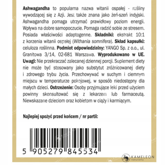 430 mg ekstraktu 10:1 z Ashwagandhy w jednej kapsułce.
