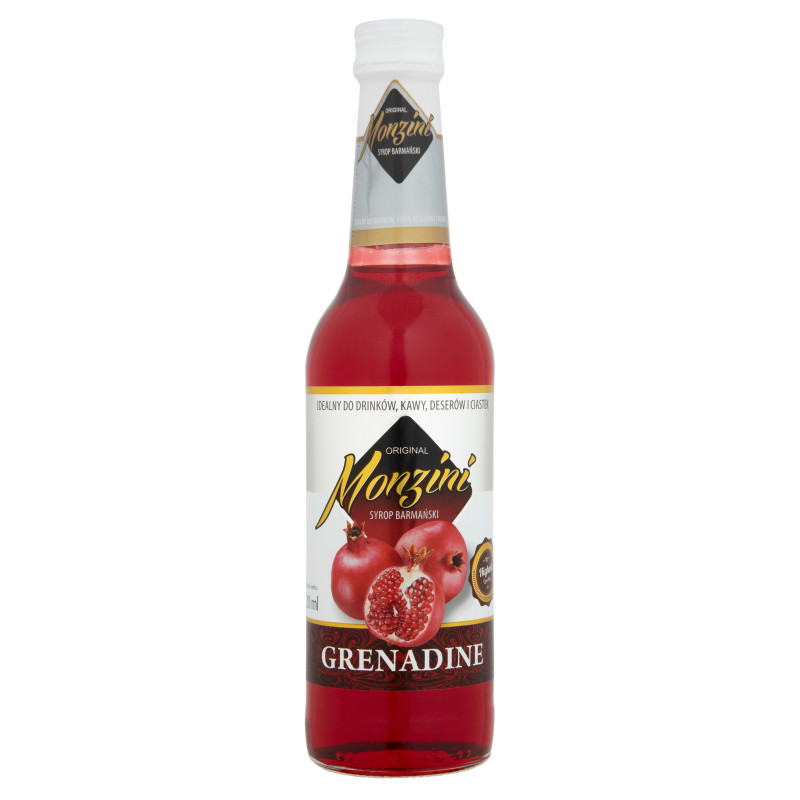 Daj się oczarować syropowi barmańskiemu o smaku granatu – znanego ze swojego wyśmienitego smaku i oryginalnego aromatu. Doskonale sprawdzi się do przyrządzania napojów, w szczególności drinków. Jego słodki smak, delikatny zapach i miły dla oka kolor uczynią z każdego drinka prawdziwą ucztę dla zmysłów!