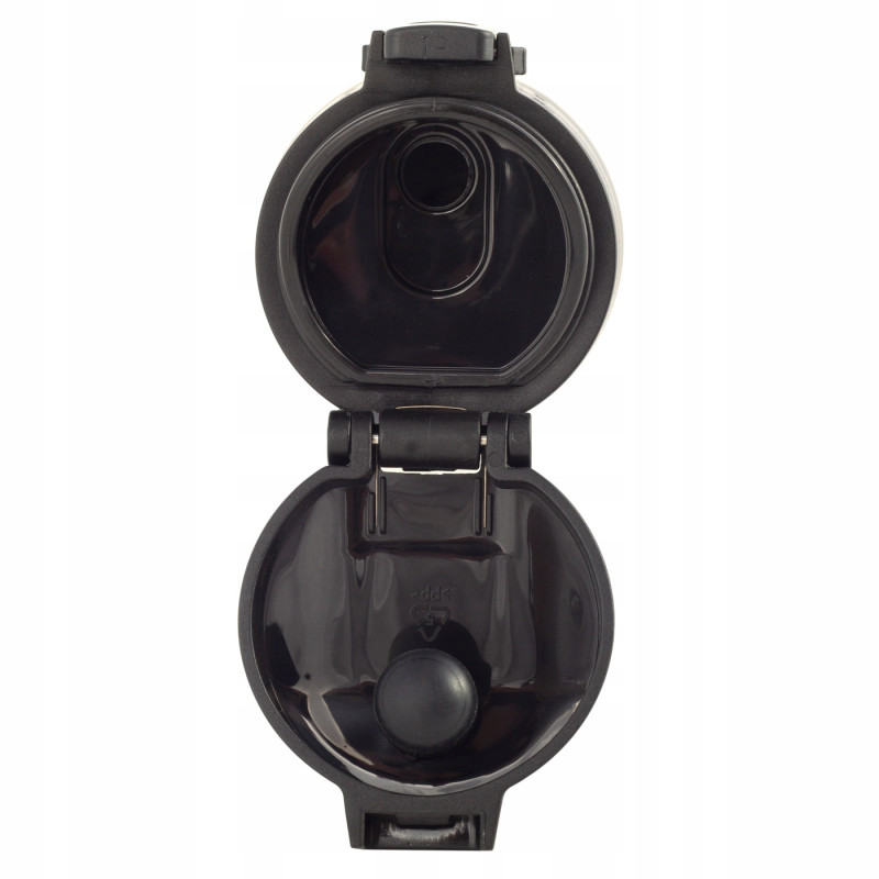 Posiada odkręcaną pokrywkę z wygodnym systemem otwierania za pomocą przycisku.