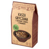 Składniki: kasza gryczana prażona (min. 85%), cebula prażona (cebula, olej słonecznikowy) 4,5%, grzyby (pieczarki, grzyby leśne) 3%, natka pietruszki suszona, tymianek suszony 0,4%, czosnek suszony.