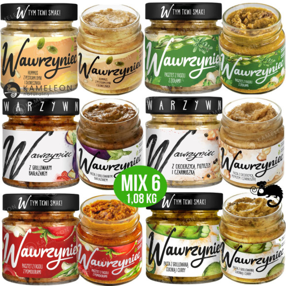 ciecierzyca – 54 % (ciecierzyca – 50,8 %, woda, sól, cukier), olej rzepakowy, woda, pestki dyni – 4 %, nasiona słonecznika – 2 %, sól, cukier, czosnek, regulator kwasowości: kwas cytrynowy, kmin rzymski. Produkt może zawierać soję, gorczycę, jaja, mleko, seler, ryby, zboża zawierające gluten.