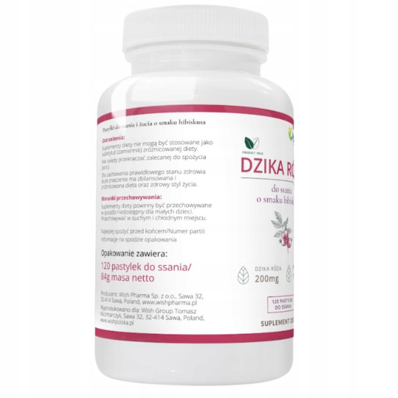 Jedna pastylka zawiera 200mg ekstraktu z owoców dzikiej róży, w tym 140mg witamina C (175%*)