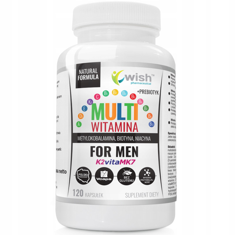 WISH Multiwitamina Complex Men Witaminy Dla Mężczyzn ADEK B C + Prebiotyk 120 Kapsułek