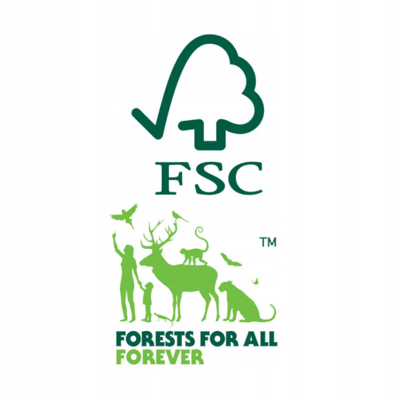 produkt certyfikowany - FSC® (to organizacja zajmująca się certyfikacją lasów oraz produktów z drewna i papieru. Przestrzeganie wytycznych FSC umożliwia pozyskiwanie drewna przy jednoczesnym zachowaniu żywotności lasów oraz ich bogactw biologicznych)