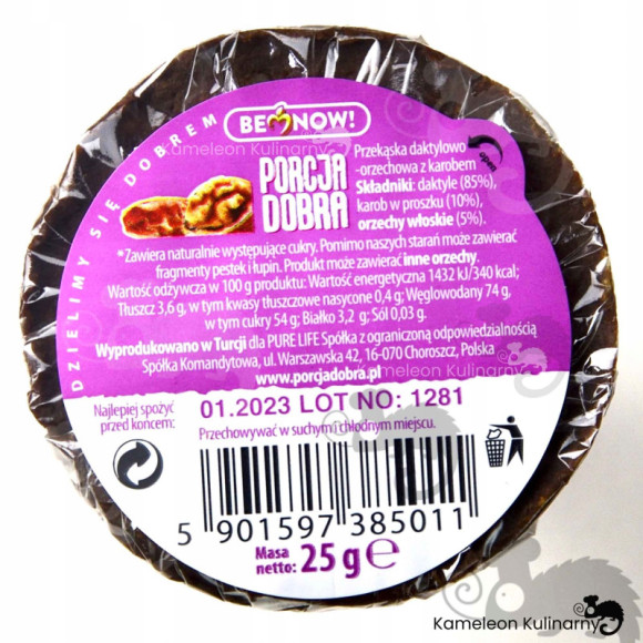 PORCJA DOBRA BENOW PRZEKĄSKA DAKTYLOWO-ORZECHOWA Z KAROBEM 25g krążek