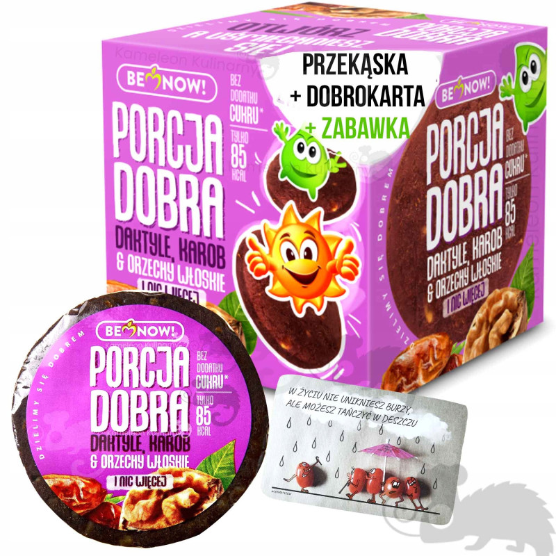 Skład przekąski: 95% daktyle + 10% karob + 5% orzechy laskowe