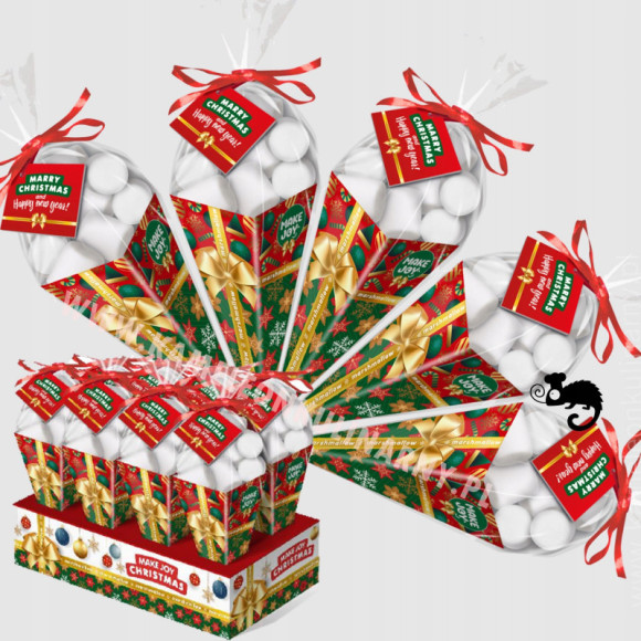 Make Joy Christmas to klasyczne pianki o smaku waniliowym w okazjonalnym opakowaniu, przeznaczone na cały okres Świąteczny. Każde opakowanie zawiera małą karteczkę z różnorodnymi życzeniami od Make Joy.