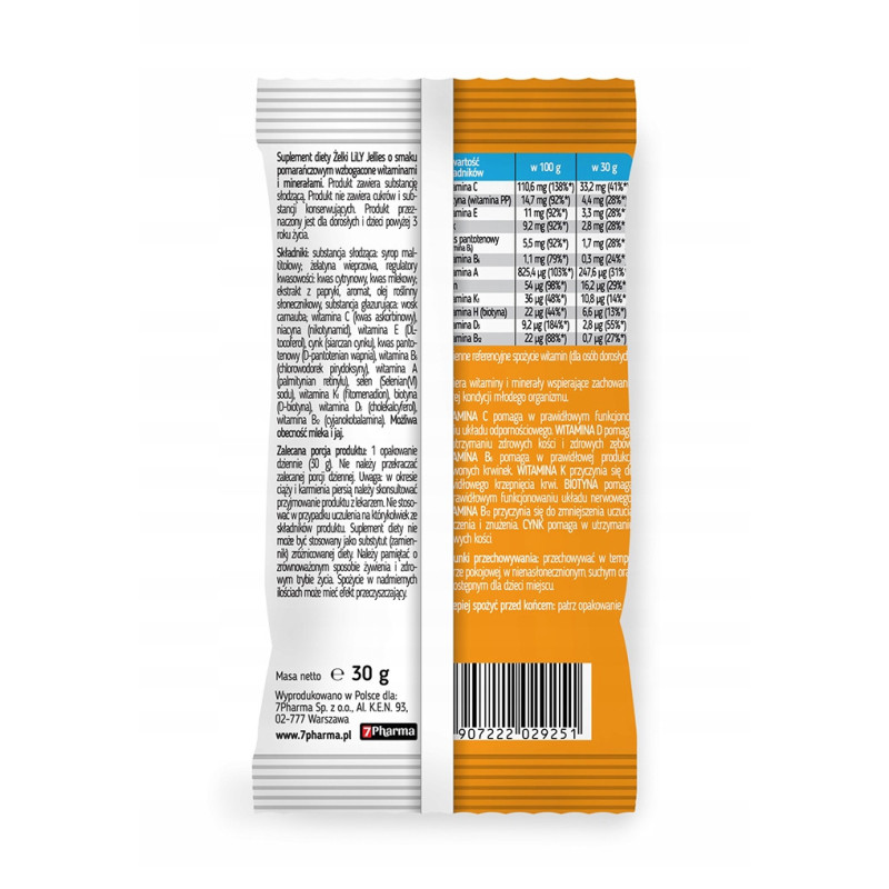 Żelki z zestawem witamin o smaku pomarańczowym LiLY Jellies, 30g